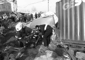 15日上午,日照一男子驾驶一辆大型货车,行至兰山区义堂镇北外环时,为躲避一辆叉车,连人带车跌入路旁约2米的深沟里。交警、消防等救援人员经过4小时努力,成功将该男子救出。图为救援人员正在施救。