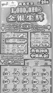 据了解,小伙子是当地人,也是体育彩票的忠实彩友,尤其喜欢顶呱刮,凡新票上市,他都要刮刮看。当天,他看好新票“金银生辉”,先刮了两张,都中了20元,又拿了两张,第一张第一个游戏中的第二局出现了两把金钥匙标志,但他没有刮开奖金区,留了个悬念给自己,刮完其它区域,没有中奖,回头他才小心翼翼地刮开金钥匙后的奖区,“1”后面有一串“0”,“大奖?!”他先自己叫了起来,仔细一数,10万元!二等奖!(柳兴强)