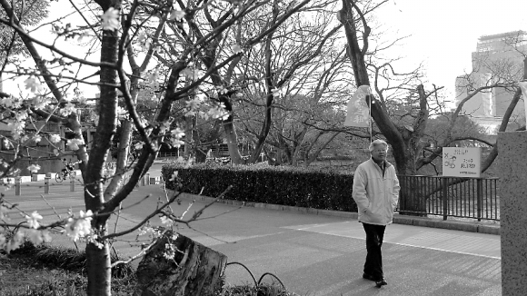 “让今年的樱花静静地绽放、凄美地凋谢吧。明年,我们再好好赏樱花。”他匆匆穿过,却留下一股绝不放弃的信念。