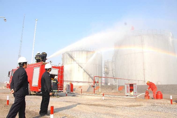 3月16日下午,滨海公安局河滨分局消防大队民警来到辖区重点安全生产单位东胜公司太平联合站,现场指挥岗位职工开展消防灭火应急演练,以提高职工消防灭火技能和快速处置突发火情的能力。
