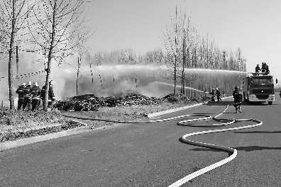 16日下午,济宁市高新区黄屯镇某村一木材厂发生火灾,木材大量堆放在路边,造成火势迅速蔓延。高新区消防大队接警后立即出动,经过近3个小时的奋战,终于将大火扑灭。 本报记者 陈鸿儒 通讯员 付永敢 摄影报道