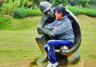 自述:一女子坐在“矿工”雕塑怀