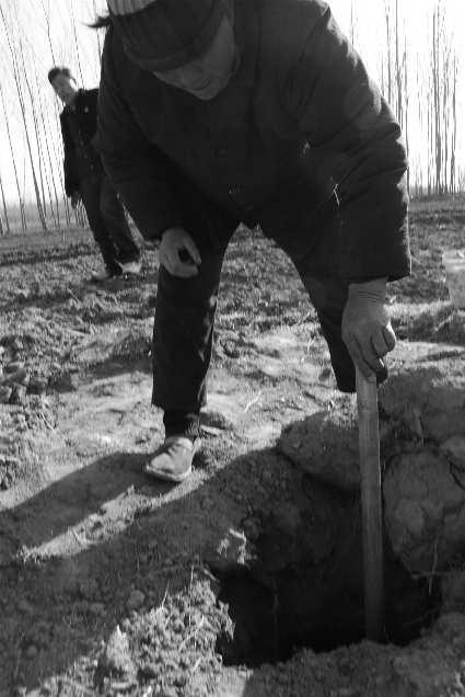 “我的一条腿差点掉进去,我连忙拔出腿,回头一看是个黑洞,吓出一身冷汗。”回忆起当时发现该墓穴的情景,村民张荣玉仍心有余悸。本来此处种的都是杨树,去年阴历十一月二十九他用挖土机挖树根时,发现了这个洞穴,并挖出一些青石砖和石板。随后,又在地里的西面发现了两处洞穴。