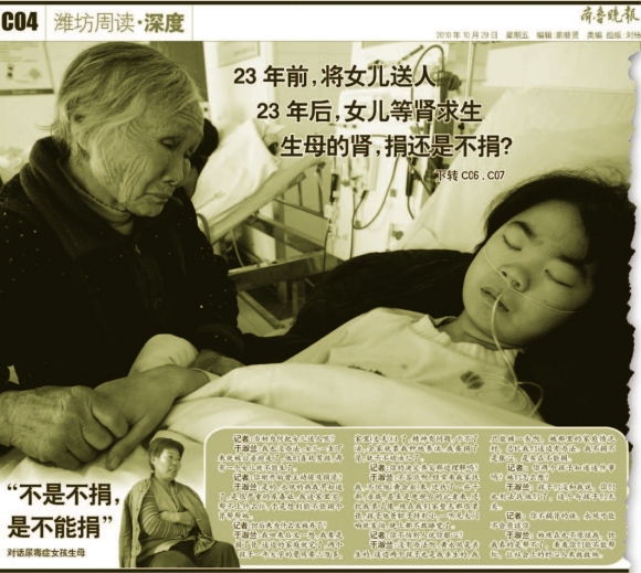 去年的这个时候,刚刚考上山东大学研究生的黄永凤患上了尿毒症,在亲生父母都拒绝援手之后,连她自己都对生命断绝了希望。