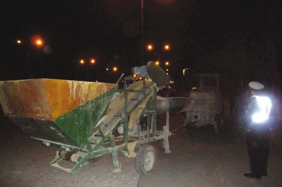 民警走近一看,这列“小火车”的“车头”原来是一台小型工程铲车,而且没有悬挂号牌,这辆工程铲车后面用铁链牵引着一台发电机,而发电机后面又牵引着一辆小型搅拌机,这是明显违反了机动车牵引法律规定。同时,民警要求驾驶员出示驾驶证和行驶证,驾驶员承认了自己的车没有上户,也没有机动车驾驶证。