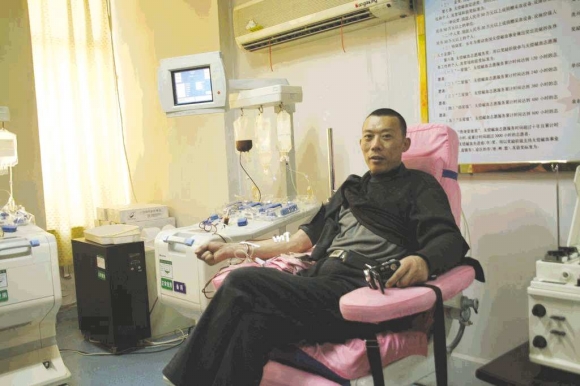 16日,在宁阳县伟诚工贸有限公司工作的张建军来到泰安市中心血站。这是他13年来第83次献血小板,除了两次献全血,张建军累计献血量已经达到62800余毫升。