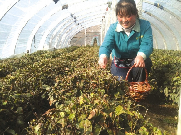 “春茶贵如金,茶农都在抢时间。”唐兴盛边说边掀开大棚的门帘。一进入茶棚内,一股湿热的气息铺面而来,棚顶上不时滴下水珠。正在整理茶树的工作人员吕西英说,今年春天虽然没有遭到和去年一样的倒春寒,但遇到干旱,茶叶的收成也不是很好,平均每亩能收入1万元左右。
