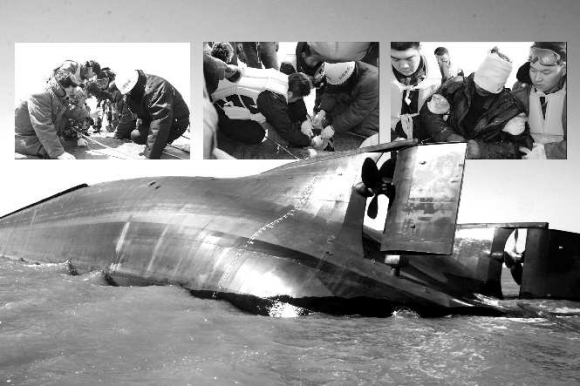 16日中午12时,北海救助局接烟台海上搜救中心电告:在蓬莱西4海里发现一翻扣钢质船,并听到船舱内有敲击声音,有生命迹象,请派遣力量救助。北海救助局立即派出专业救助船“北海救131”轮及在烟台待命的水下救助力量应急反应救助队出动救助。