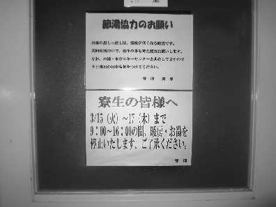 付蒙蒙说,有一个自动售卖机上贴着一张通知:“受3月11日发生的东北地区太平洋地震影响,同时又接到给受灾地区提供饮料的要求,请允许我们取消一部分产品的供应。”
