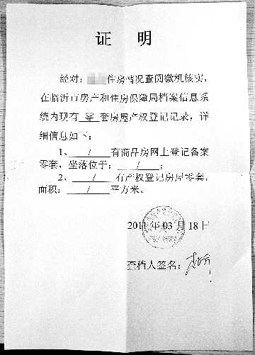 据许先生介绍,他最近看好了一处房子,正打算购买,售楼处要求他提供一份无房证明和一份单身证明。没想到,临沂市房产和住房保障局在开具无房证明盖章时,要求收费50元。许先生说,当时他身后还有40多人在排队等待,很多人对此项收费颇有异议。