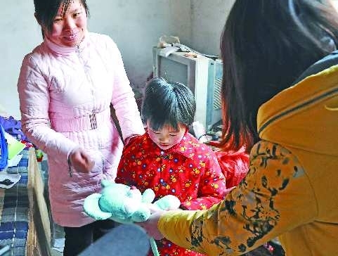 今年8岁的张雯雪在双庙镇曹庄小学读一年级,3个月大的时候父母出了车祸,现在和爷爷、大伯一家在一块生活。据爱心社团长孙延敏介绍,她们通过县妇联知道张雯雪的事情后,就来到她家中进行家访,“我还清楚地记得第一次见张雯雪的情景,孩子长得挺秀气,穿得也挺干净,但就是不理会人,连看都不看我们一眼,显得很孤僻。”通过数次家访后,张雯雪和社员们逐渐熟络起来,孩子的脸上也有了平常不多见的笑容。“本来我们给张雯雪的爷爷打了电话,可她爷爷需要输液不能送她参加活动。”孙延敏说。