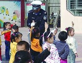 3月18日,垦利大队宣教及中队民警协同县教委有关人员,来到垦利县第一幼儿园,民警通过教小朋友现场做手势操,为该幼儿园的广大师生送去了一堂生动的道路交通安全课。 本报见习记者 段学虎 本报通讯员 王海波 摄影报道
