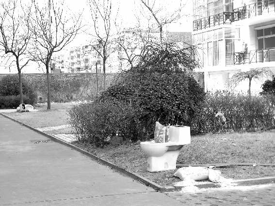 近日,记者在河东风景嘉园小区发现,3号楼前面的绿化带内不多远就有两个破旧的马桶,5号楼前面的绿化带内也躺着一个破碎的马桶。