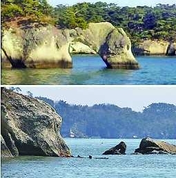 据日本新闻网20日报道,有日本“三大绝景”之一之称的宫城县松岛最有名的“长命穴”景致在大地震中崩塌。时事通讯社提供的照片显示,“长命穴”已经完全地消失,这一千年景观已经不复存在。