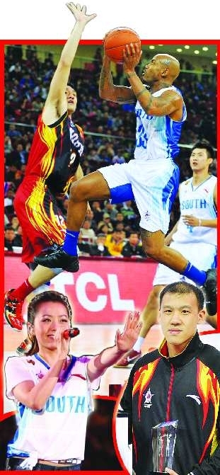 南方队球员马布里(中)在比赛中突破上篮。 新华社发张靓颖在全明星赛正赛开幕式上演唱。 山东队球员孙杰在颁奖仪式上。当日,孙杰在CBA全明星周末三分球大赛中,获得冠军。