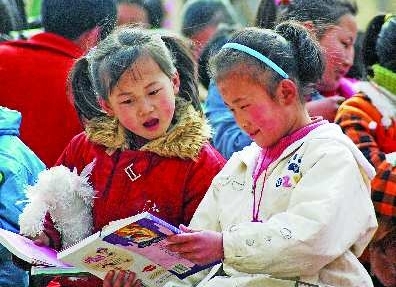 在现场捐赠仪式中,很多孩子在接到书本之后马上翻开阅读,如饥似渴。一名女孩子在拿到一个大毛绒玩具后,紧紧抱着,不肯松手,脸上也多了一分喜悦和满足。
