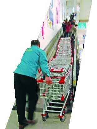“丢小推车是常有的事,平均每个月得丢两三辆吧。”市中区一家大型超市负责小推车管理的工作人员无奈地告诉记者,这些小推车是以每辆近400元的价格买来的,每丢一辆超市都要对相关工作人员进行处罚,这让他们压力很大。由于超市门外就是马路,这家超市在室外广场安排了近十人倒班执勤。“我们曾经在出口不远处设置了‘小车到此为止’的标志,但不管用。”