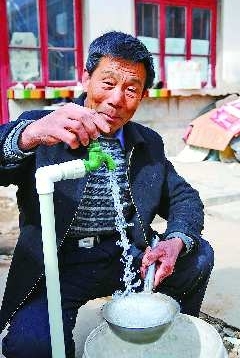 22日上午10时,记者再次来到了村民王廷珍家里,因为今天她去邻村的集市上买东西,所以记者只见到了她的儿媳李君丽。李君丽告诉记者,现在通上自来水以后,吃水变得方便多了,不需要再去邻村挑水,而且水质要比压水井打上来的地下水好很多。