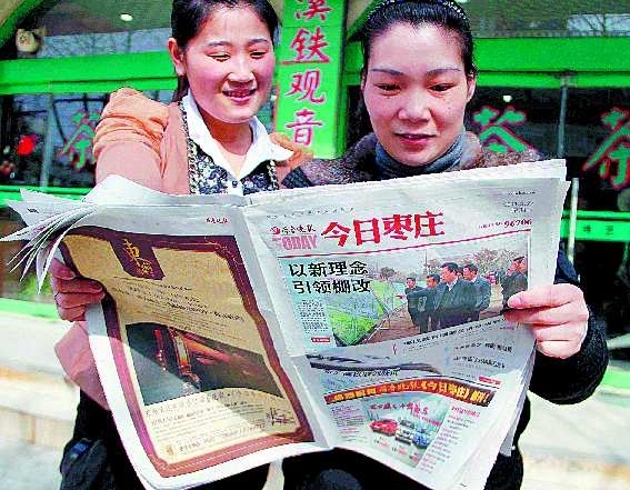 22日,《齐鲁晚报·今日枣庄》在枣庄落地,正式出版发行,获得了枣庄市民的一致好评。图为在振兴中路上,市民在争看《齐鲁晚报·今日枣庄》。 记者 展萍 张帆 摄