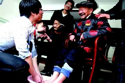 22日下午,高新区敬老院内洋溢着浓浓爱意,山东畜牧兽医职业学院的志愿者们正在为老人修剪指甲、洗脚按摩,让老人们享受到了“儿女”的关爱。志愿者陈永强说,通过参与这样的活动,也给自己上了一堂“孝心课”。