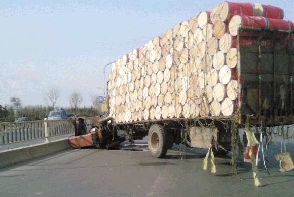 22日14时30分许,在光岳北路一家加油站附近,一辆满载化工原料的拖拉机撞上中央护栏,头拧了过来,所幸司机安然无恙。