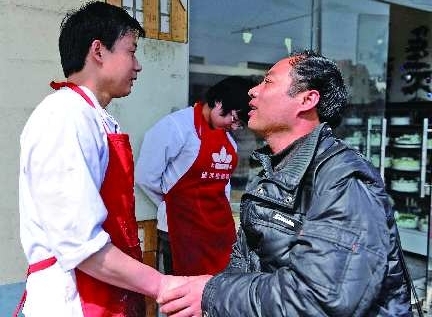 为了能够确认是否是王世东的女儿,记者先期来到了王官庄的这家蛋糕店。来到店里,记者看到有三位女孩在蛋糕店打工,其中一名戴着眼镜的短发女孩像是王世东对自己女儿的描述。接着,记者立即给王世东拨打电话,将地点告知他。