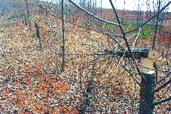 400多棵杨树,一夜之间被人“腰斩”。3月18日晚,莒县中楼镇山庄村7户村民家的杨树被锯断。 本报记者 寇润涛 本报见习记者 彭彦伟 摄