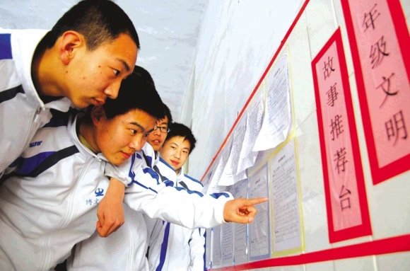 23日,泰山博文中学的学生们围在学校的墙前享受着这一道精神大餐。该校精心打造了“班级文化长廊”,设立了“新学期规划”、“文明礼仪专栏”、“班级风采”等栏目,让每一面墙壁都成为会“说话”的交流平台。