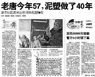 ▲本报1月8日曾报道了《老唐今年57,泥塑做了40年》。