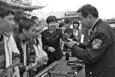 23日上午,济宁市运河实验中学的58名学生来到济宁市公安局市中区分局阜桥派出所,零距离感受了警营气息。学生们参观了“110”接处警室,并看到了警用装备,直观了解到民警的工作环境,上了一堂生动的法制教育课。 本报记者 姬生辉 见习记者 吴鹏 摄