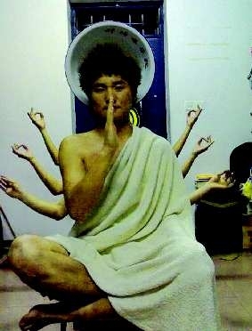 拍摄时间:2010年10月拍摄地点:大学宿舍作品描述:几位同学周末没事做,自己在宿舍里自娱自乐,表演千手观音。怎么样?有点意思吧!相机型号:天宇手机作者:秦玉磊奖金:20元