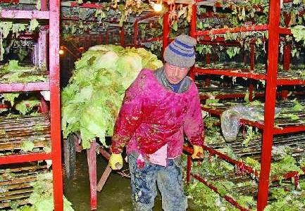 腐烂的白菜汁滴到皮肤上,皮肤就会红肿。进去取菜必须全副武装:戴上皮帽子、胶皮手套,披上雨衣,穿上胶皮鞋。