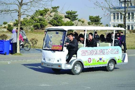 事件:在临沂大学校区,两辆校园巴士穿梭在大