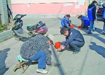 3月25日,六里山街办的居民志愿者和城管一起清理路上的野广告。通讯员 赵辛 摄