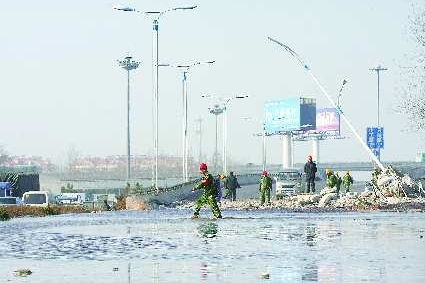 本报烟台3月27日讯(记者 张琪)27日15点17分,烟台发电厂对1号、2号发电机组百米高的烟囱实施爆破拆除。烟囱在3秒钟的时间内完成了定向爆破,但烟囱倒地时却偏出了指定区域,部分烟囱砸向发电厂外的道路,压爆了地下的自来水管和煤气管道。