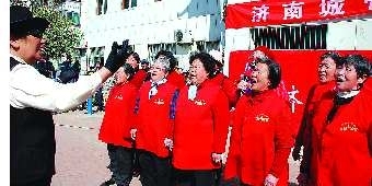 27日上午,燕山小区内一片热闹景象,近百名百姓城管早早在燕山小区主题公园集合。9时整,随着红歌唱响,百姓城管活动正式拉开帷幕。这次的红歌会由英雄山脚下搬到了社区里面,一首首经典的红歌唱到了社区居民心里,燕山小区老年合唱团的成员也受到感染登台献唱,赢得了全场掌声。