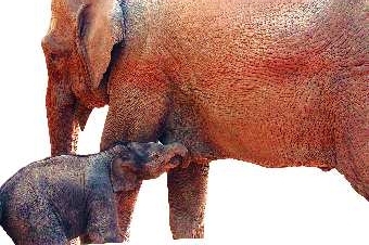 更为调皮的是,小象还经常玩象妈妈的粪便。大象是草食动物,粪便量大松散,象宝宝把妈妈的粪便当成了玩具,有时用脚踩踏,有时用鼻子卷起来扔到背上,有时在粪便上打滚……真是又好笑又可气。饲养员认为象宝宝的这些行为都是正常的,不用横加干涉。