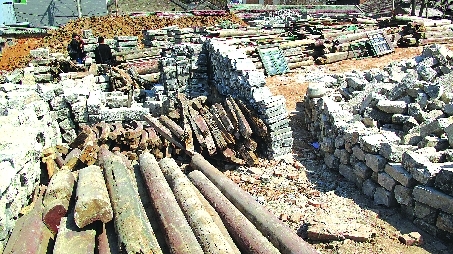本报3月27日讯(记者 乔显佳) 27日记者在济南市县西巷武岳庙一带看到,经过一段时间的施工,目前武岳庙原有建筑及配套建筑已经被拆除,拆下的石料、木料等堆放在旁边一个大院内。有文物古建专家现场查看后,对文物保存的方式提出异议。