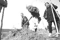 上午9点,植树活动正式开始。百余名烟台大学人文学院的学生,二话不说,扛起一捆捆树苗,分散到各个植树点。“这次植的树个头挺大的,我一定多种几棵。同学们,把树苗都扛过来。”已参加了本报3次植树活动的许家浩同学说,作为烟台大学人文学院青年志愿者协会的会长,看到齐鲁晚报又组织植树活动,他抓紧时间下了通知。“没想到大家热情依然高涨,报了300多人,只能分批来了。”