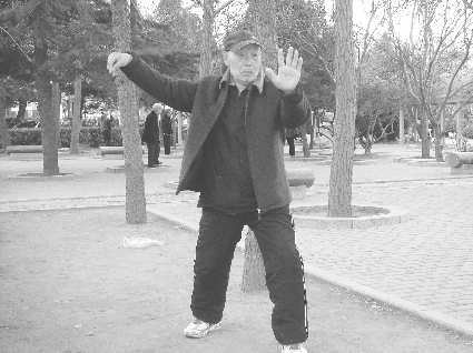 餐必饮的一杯醇香鲜奶,仍是当日生活的首项程序。如今,在机械大厦前的东风游园里,每日清晨首个进场的,是手握楠木棍的“老顽童”,师傅当年所教压腿、踢腿、打拳的老一套至今未丢,并几十年如一日地琢磨“外练一口气、内练筋骨皮”的奥妙功法。单就“腿过头顶的压腿功”,是今日80后和90后多数人望尘莫及的。近两年来,外在的手、眼、身、法、步虽已逊色年轻人,但内在的意、气、力却渐成火候、相当老练。尤其是擅长的“太极推手”、“铁面掌”、“铁腿功”,已是拿手“绝活”,其功力可达气血沉至双腿程度。同对方练双人推手,年轻人手臂酸软时,“老顽童”却兴致正厚、并无感觉。其“铁面掌”拍树功那可令人叫绝。园内一颗碗口粗的银杏树,2厘米厚的树皮,已被拍得露出一片淡黄色。每次练功时,只见其两腿微分、含胸拔背、虚领顶劲、沉肩坠肘,长满老茧的右手掌带着厚实的沉劲先猛拍树皮,手腕略微轻轻抖弹,手背随之落在树皮上。如此左右开弓、循环往复,一次至少持续5分钟。每次练功时,随着手掌拍树的阵阵啪啪声,口中还喊出一串串发力的“嗨嗨”声,引得过往行人纷纷驻足观望。