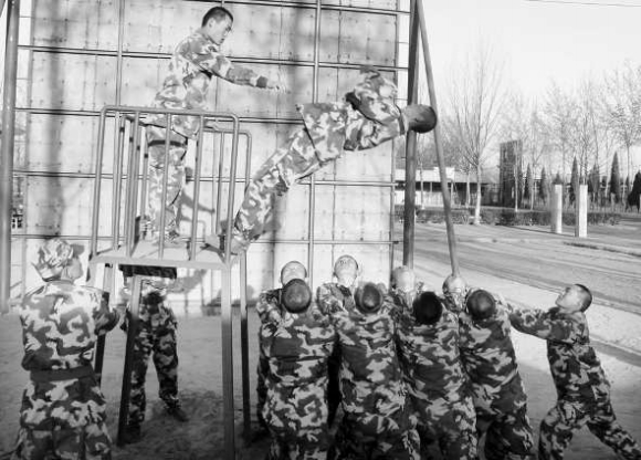3月26日,武警聊城支队对新兵进行体能、技能、智能“三能合一”训练的同时,围绕攀越综合训练架、翻越电网、生死关卡、合力冲击、跨越断桥、信任背摔等课目进行严训,开展新兵心理行为训练。