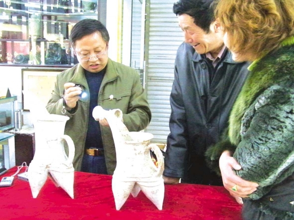 《寻宝》活动自在泰安海选以来,已经有670余位市民报名,收到1000余件民间藏品,其中有龙山文化时期的“蛋壳陶”,也有明清、近代的字画。图为鉴宝专家正在鉴赏报名者送来的藏品。 本报见习记者 王鸿哲 摄