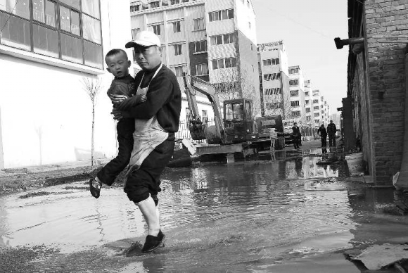 3月28日上午7时许,东城鲁班公寓东侧路边的地下水管道被一正在施工的挖掘机不慎挖断,导致路面积水成灾,行人难以通行。经施工方采取紧急措施后,地下水管道很快得到了修复,恢复供水。