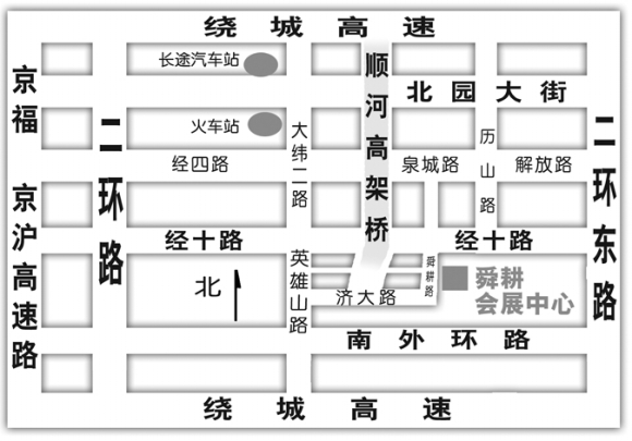 济南市区的朋友,乘坐39、48、64、66、85、110、152、K54、K100、公交车至“会展中心”站下车,路东即是。