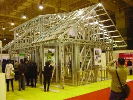 在54平米的面积上,帮你建起一个二层小别墅。29日,2011第十一届中国北方国际供热采暖展览会在青岛国际会展中心开幕,会上一参展商展出的薄钢结构整体别墅吸引了不少参展者的目光。 本报记者 刘大正 摄影报道