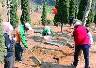 29日下午,竹岛办事处陶家夼社区党员志愿者们清理辖区内公墓的杂草等易燃物品,为居民提供安全的祭祀场所。
