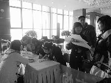 在烟台意程票务有限公司报名点,同一个单位的几个小伙子来报名:而在大剧院报名点,几位美女不约而同赶到现场报名。本届相亲会不缺帅哥美女。本报记者柳斌赵珂实习生黄埔摄