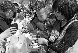当日10时40分许,记者发现一位年轻的妈妈抱着自己的孩子走向募捐箱,孩子手里拿着300元钱。年轻妈妈告诉记者,孩子叫孙大圣,已经1岁8个月了。当天娘俩买衣服时路过广场,看到有募捐活动,了解情况后,将身上全部300元钱捐了出来。“我希望从小就能培养孩子助人为乐的意识。”年轻妈妈说。