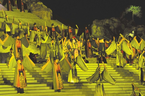28日晚,泰山天烛峰景区内灯光辉映,中华泰山·封禅大典实景演出2011年首演举行。今年,中华泰山·封禅大典演出有三大变化。