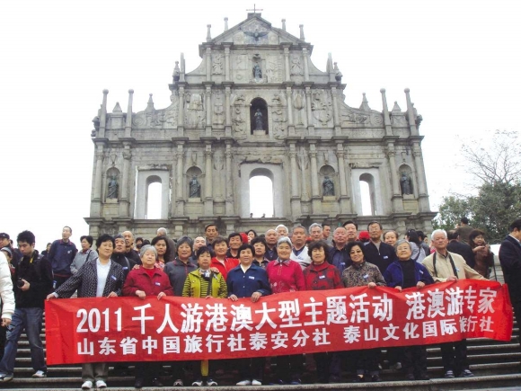 山东省中国旅行社泰安分社 泰山文化国际旅行社2011年推出的千人游港澳夕阳红系列首发团于3月18日出发,3月25日圆满归来,得到老人的高度赞赏,首批团队在香港澳门的住宿更是升级为五星豪华住宿,回来的老人们纷纷又来咨询东南亚以及欧洲等线路,准备再相约跟随该旅行社进行下一次旅程。目前4月8日夕阳红系列第二团即将踏上旅程,4月18日团队正火热报名中。